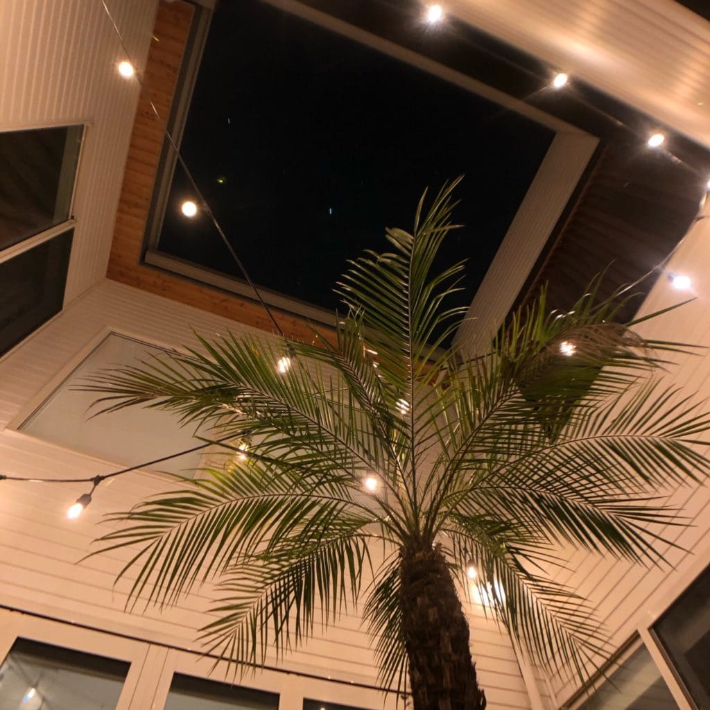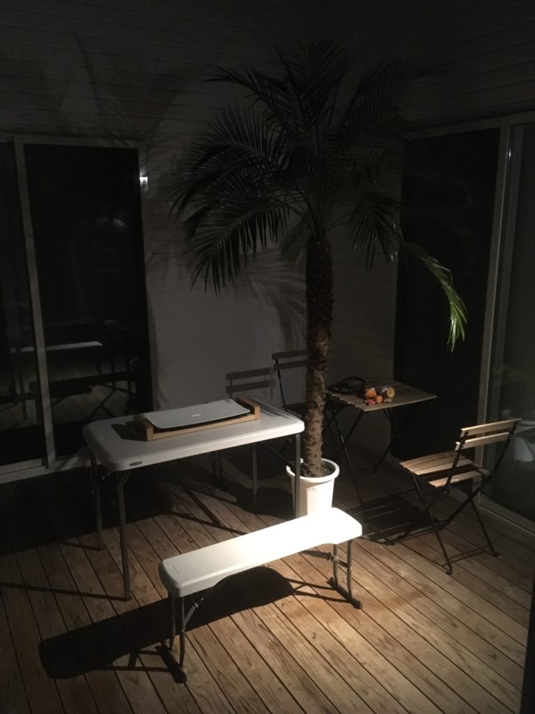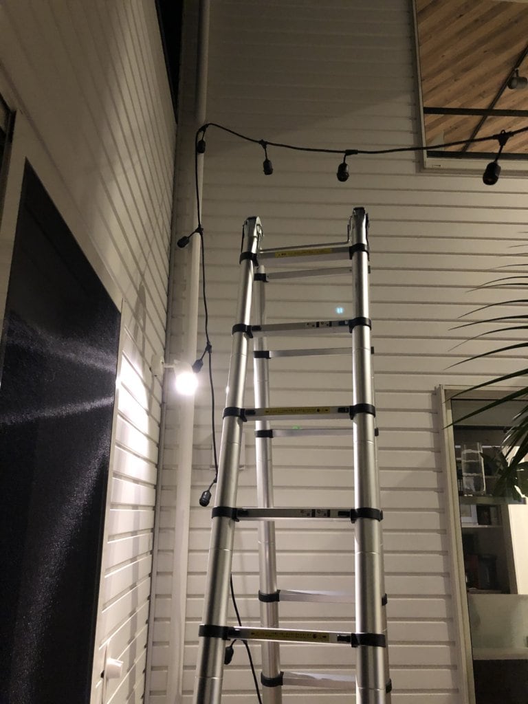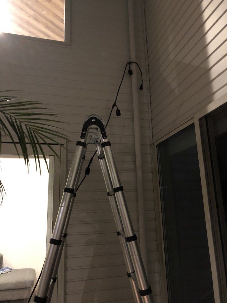 頭の中でのイメージは、中庭の真ん中でストリングライトがクロスするように付けることでした。