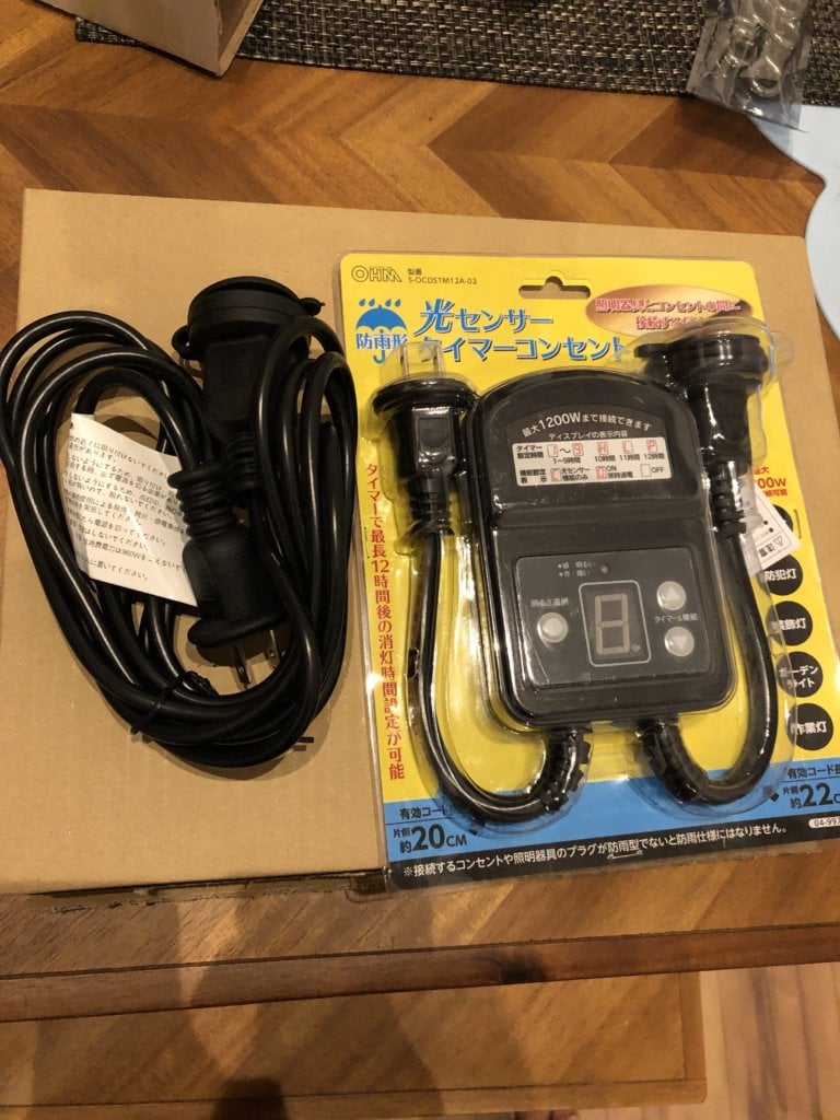 センサーのタイマーコンセントと防雨型の延長コードです。